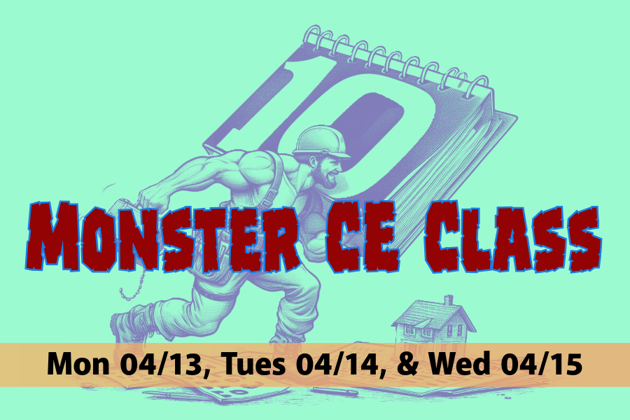Join us for these live, in-person 10-hour Home Inspection CE Classes and knock out a bunch of hours in one shot!